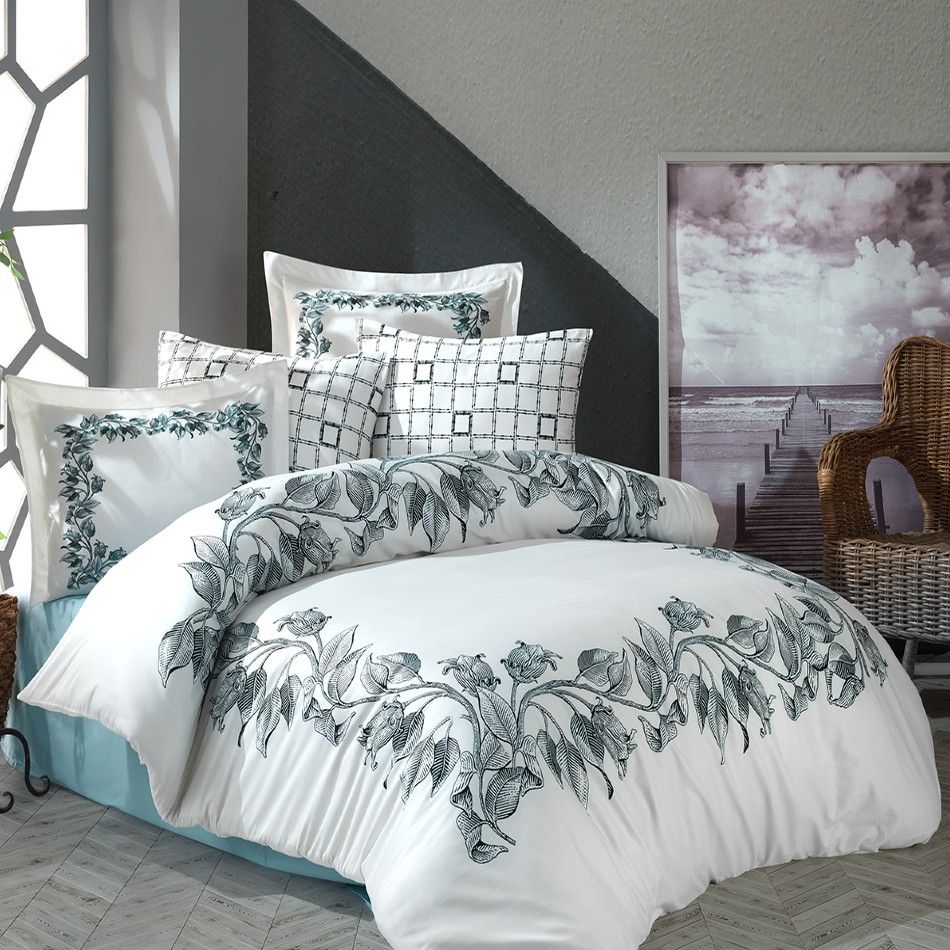 Lenjerie de pat de Lux din Bumbac 100% Satin 200TC, Pat 2 persoane – Dantela Carrie 3D