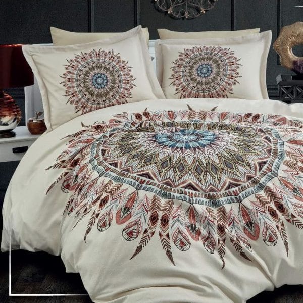Lenjerie de pat de Lux din Bumbac 100% Satin 200TC, Pat 2 persoane – Dantela Harmony Bej