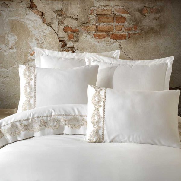 Lenjerie de pat de Lux din Bumbac 100% Satin 200TC, Pat 2 persoane – Dantela Vita – Inci Crem