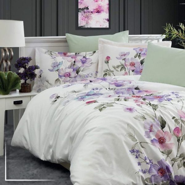 Aceasta lenjerie de pat este confectionata din bumbac satinat de densitate mare, 200 TC, avand culoarea mov (200 TC ne indica densitatea tesaturii materialului, iar bumbacul satinat este tesatura cu firele atat de urzeala cat si de batatura din bumbac mercerizat).