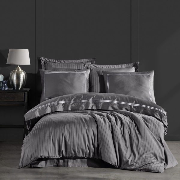 Lenjerie de pat de Lux din Bumbac 100% Satin 200TC, Pat 2 persoane – Dantela Vita Imge – Gri – PUF142837