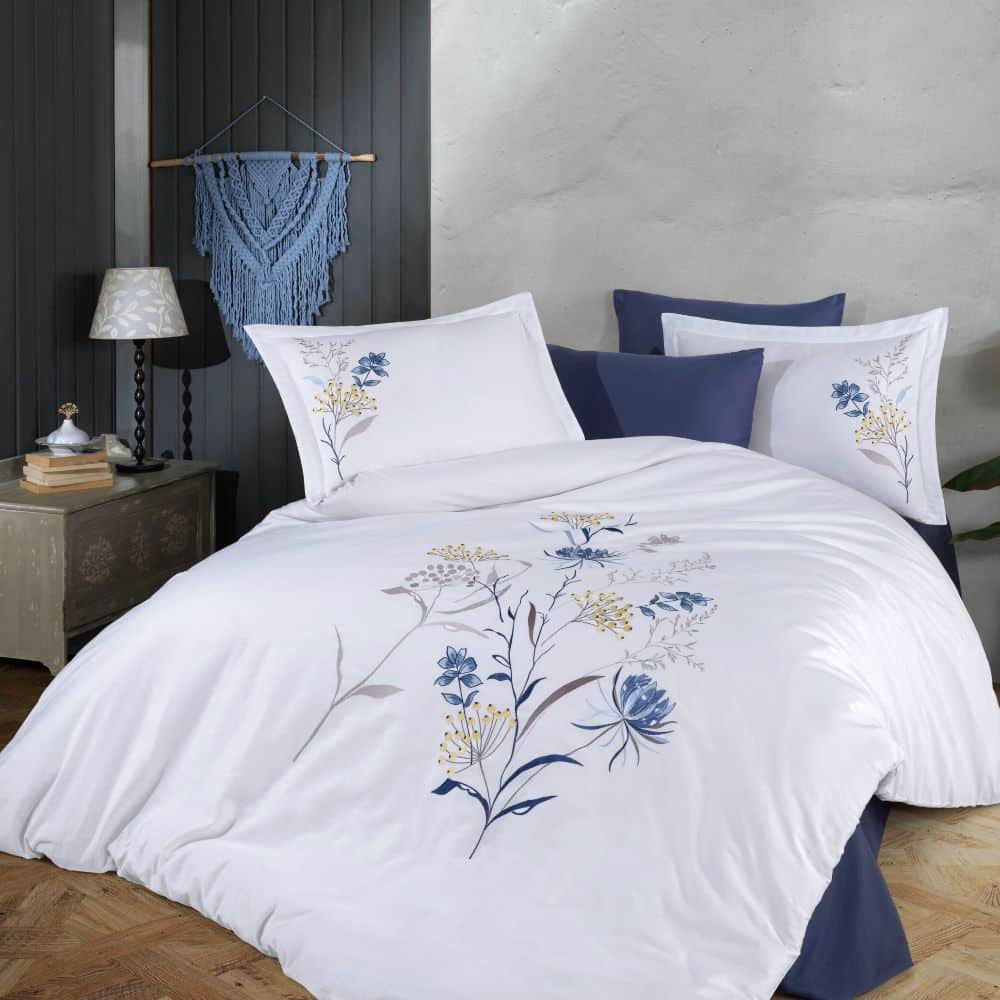 Lenjerie de pat de Lux din Bumbac 100% Satin 200TC, Pat 2 persoane – Dantela Vita – Nilufer Alb