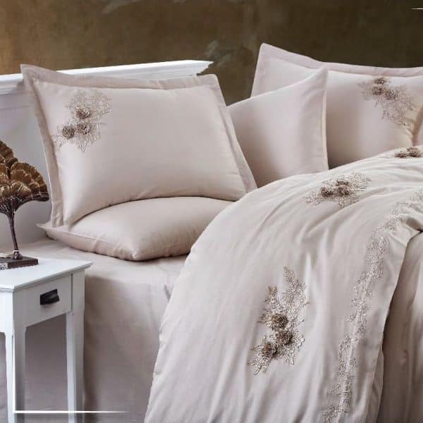Lenjerie de pat de Lux din Bumbac 100% Satin 200TC, Pat 2 persoane – Dantela Vita – Safir Bej