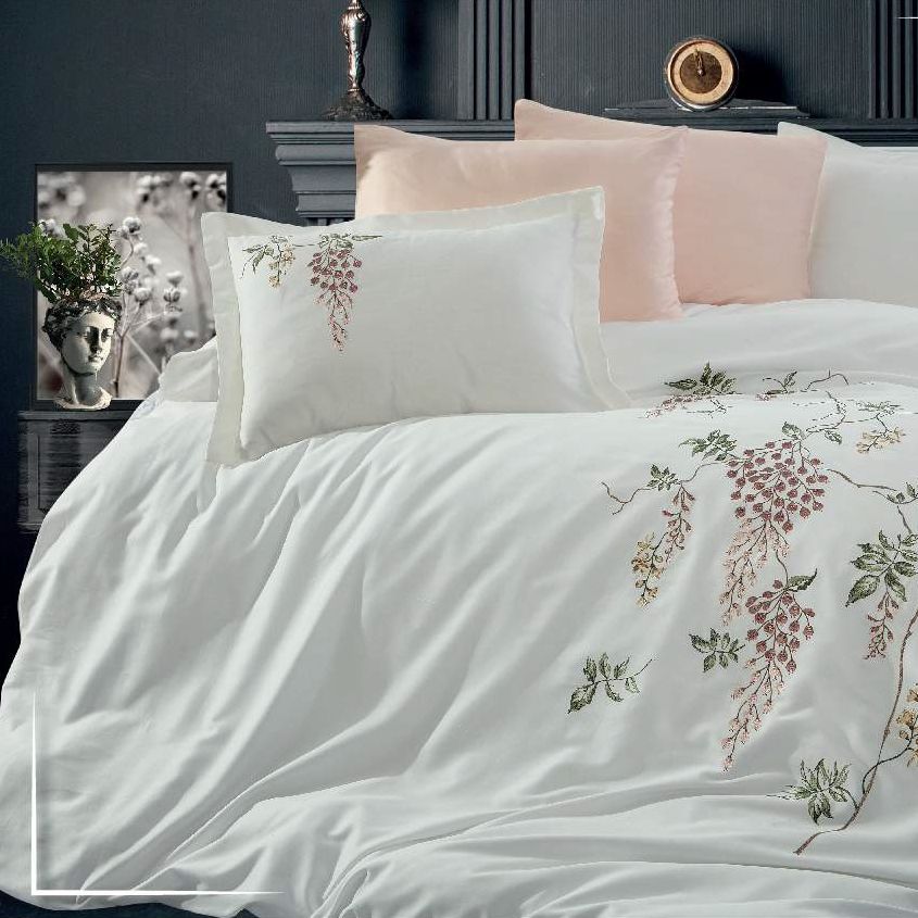 Lenjerie de pat de Lux din Bumbac 100% Satin 200TC, Pat 2 persoane – Dantela Vita – Salkima
