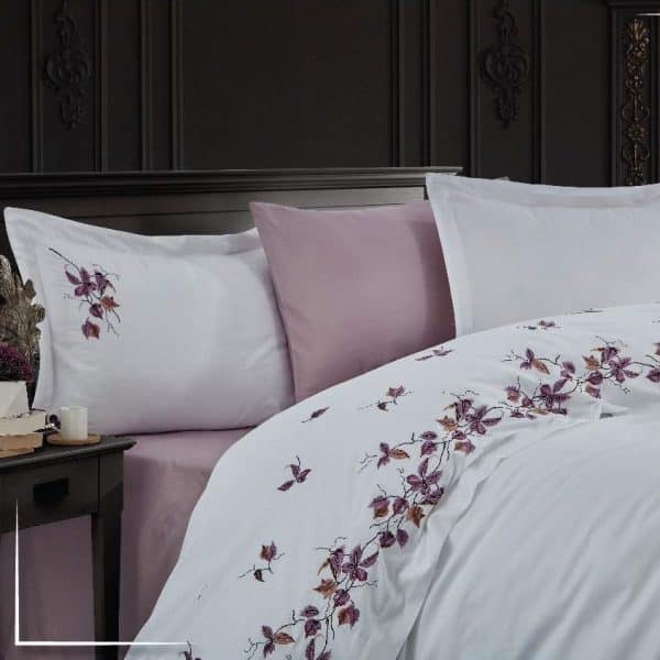 Lenjerie de pat de Lux din Bumbac 100% Satin 200TC, Pat 2 persoane – Dantela Vita – Sonbahar Lila