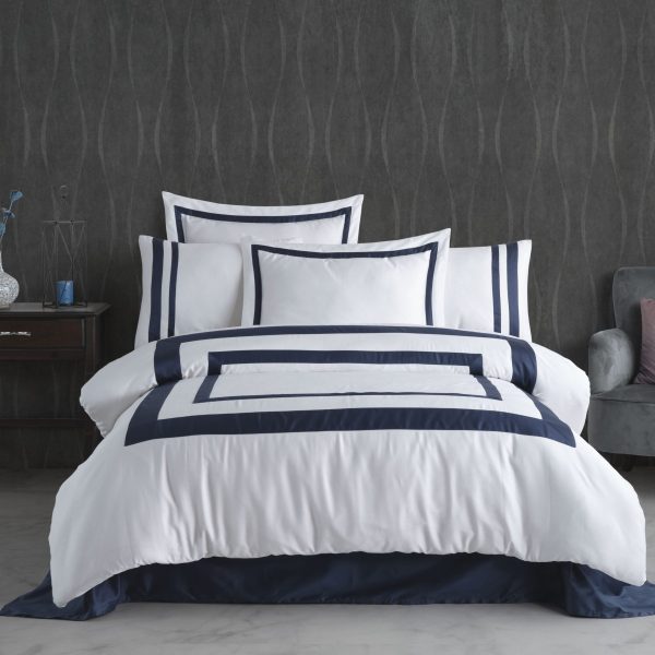 Lenjerie de pat de Lux din Bumbac 100% Satin 200TC, Pat 2 persoane – Dantela Vitali – Lacivert – PUF142851