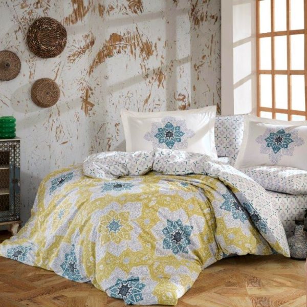 Lenjerie de pat din Bumbac 100% Poplin, 4 Piese, Pat 2 Persoane – Hobby – Amanda Yellow
