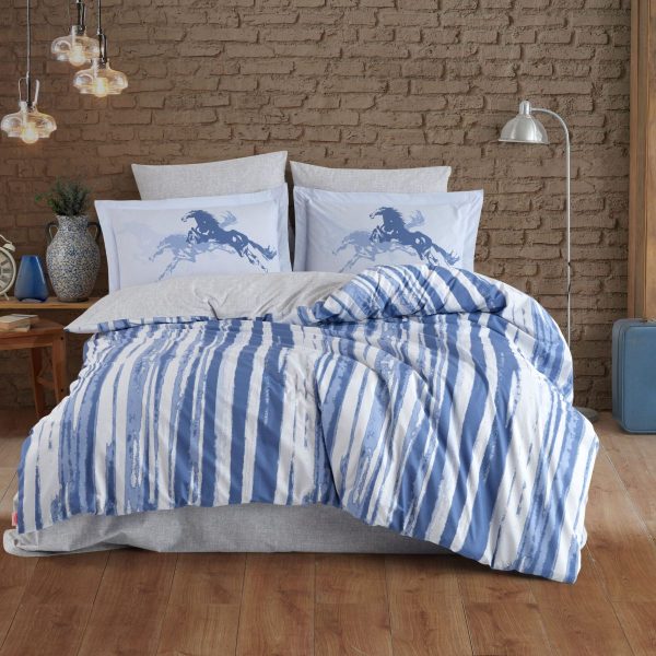 Lenjerie de pat din Bumbac 100% Poplin, 4 Piese, Pat 2 Persoane – Hobby – CASCADE – MAVI