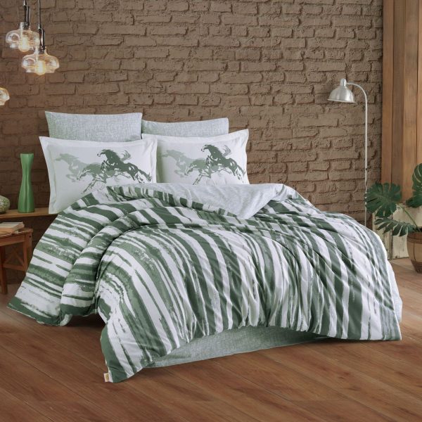 Lenjerie de pat din Bumbac 100% Poplin, 4 Piese, Pat 2 Persoane – Hobby – CASCADE – YESIL
