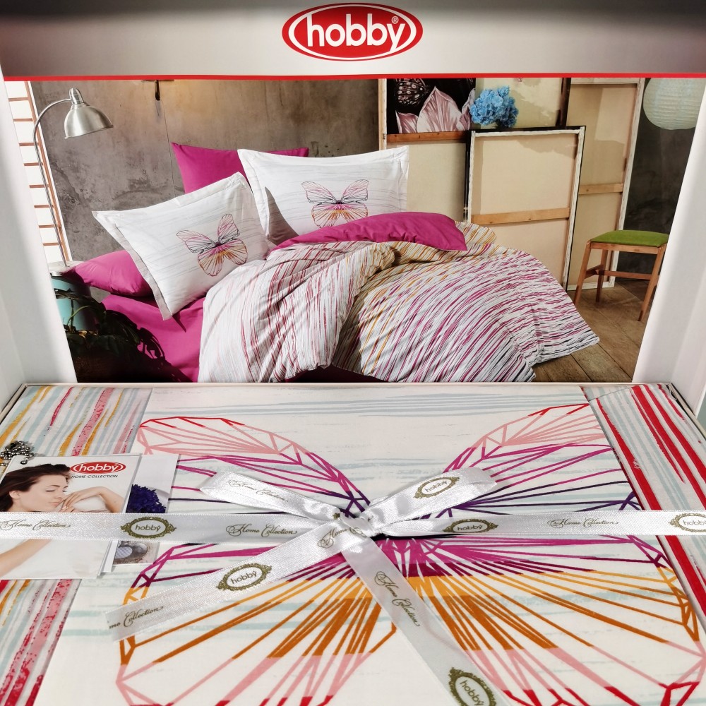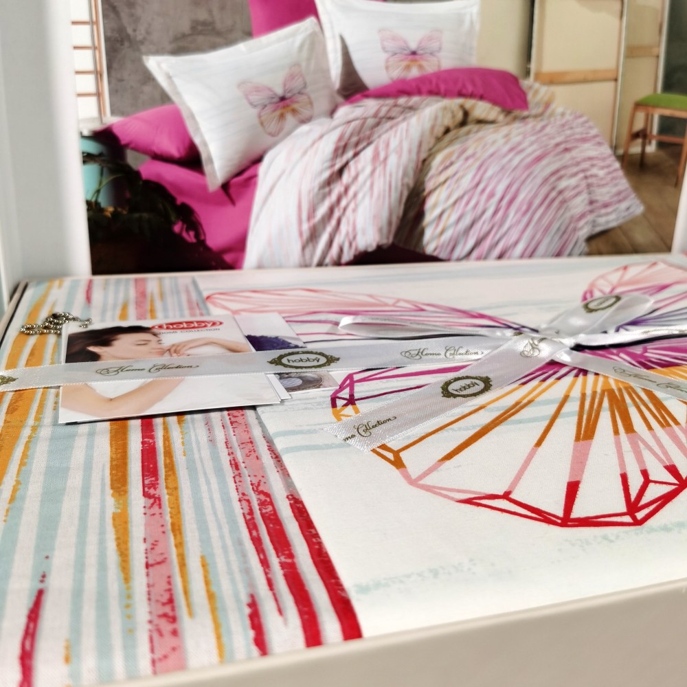 Lenjerie de pat din Bumbac 100% Poplin, 4 Piese, Pat 2 Persoane – Hobby – Eldora Fucsia