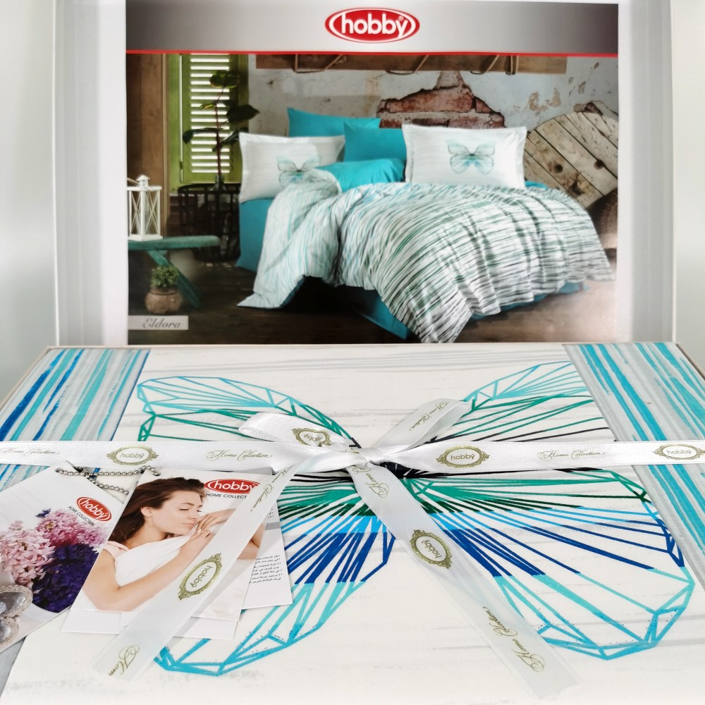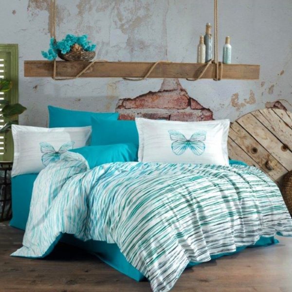 Lenjerie de pat din Bumbac 100% Poplin, 4 Piese, Pat 2 Persoane – Hobby – Eldora Turcoaz