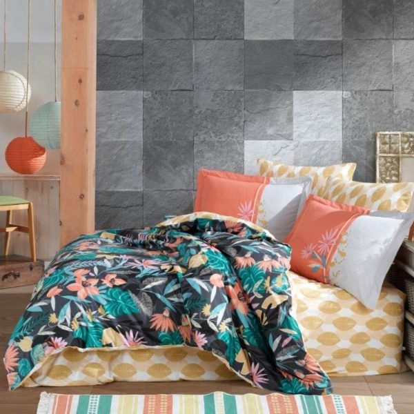 Lenjerie de pat din Bumbac 100% Poplin, 4 Piese, Pat 2 Persoane – Hobby – Monstera Orange