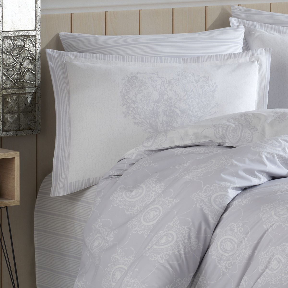 Lenjerie de pat din Bumbac 100% Poplin, 4 Piese, Pat 2 Persoane – Hobby – RACHEL – GRI