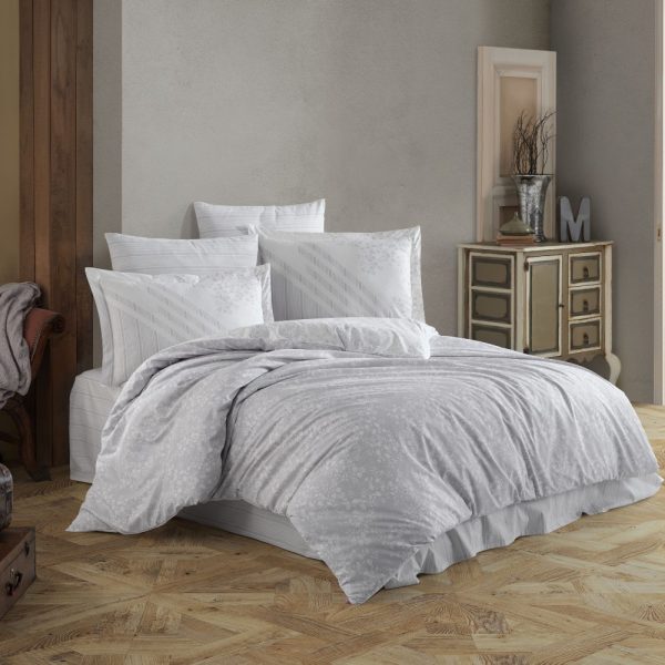 Lenjerie de pat din Bumbac 100% Poplin, 4 Piese, Pat 2 Persoane – Hobby – ROMANCE – Gri