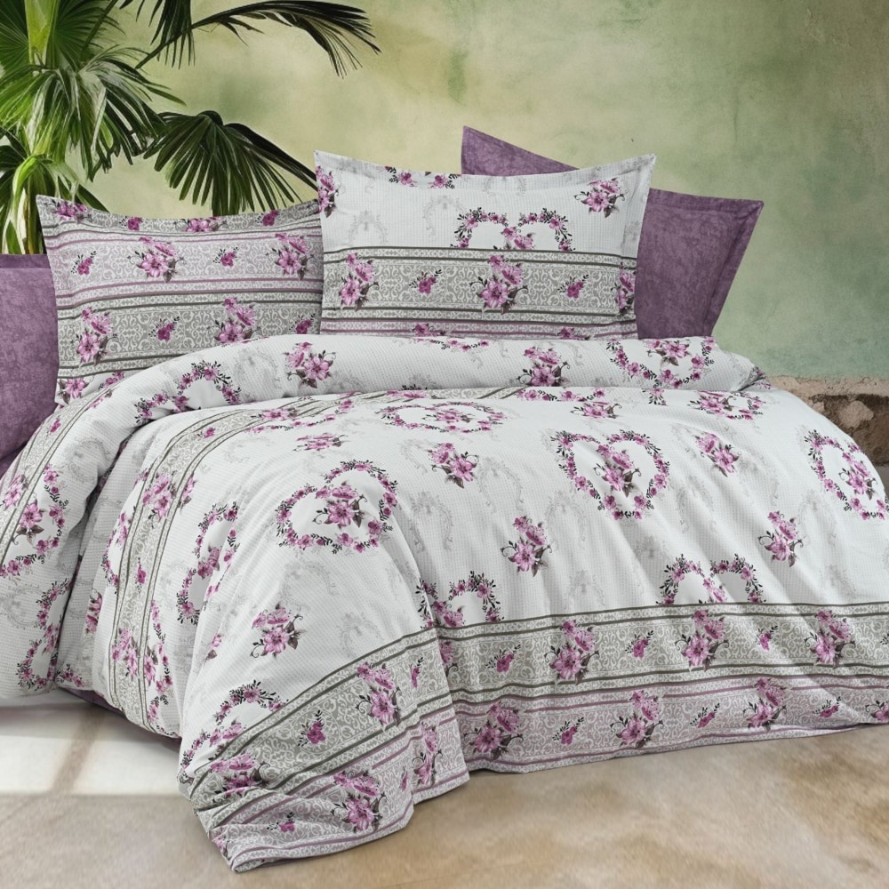 Lenjerie de pat pentru 2 persoane, compusa din 4 piese, confectionata din bumbac 100% de tip Ranforce. Materialul este placut la atingere, deosebit de rezistent si 100% organic, compozitia asigurant un confort ridicat mai ales in sezonul cald.