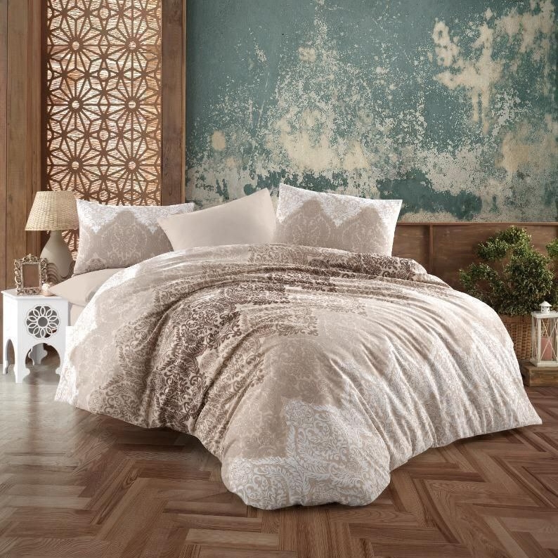 Lenjerie de Pat din Bumbac 100% Ranforce – Pat 2 Persoane, 4 Piese – PUF171606
