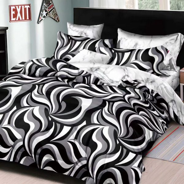 Lenjerie de pat din bumbac satinat pentru doua persoane. Lenjeriile noastre au o tesatura extrem de fina, placuta la atingere si iti ofera tot confortul de care ai nevoie indiferent de sezon. Datorita calitatii superioare a tesaturii, culorile si imprimeurile vor ramane intacte chiar si dupa multiple spalari sau calcari.