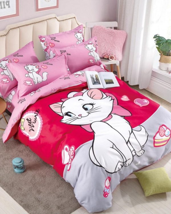 Set Lenjerie de Pat Dublu, Bumbac Finet Superior, 2 Fete, 6 Piese – Lovely Cat – PUF9754