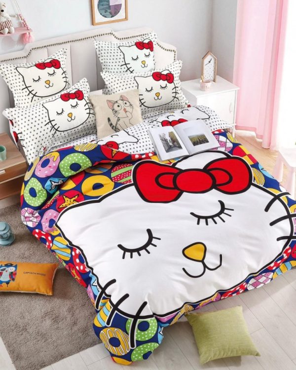 Set Lenjerie de Pat Dublu, Bumbac Finet Superior, 2 Fete, 6 Piese – Sleepy Cat – PUF9759
