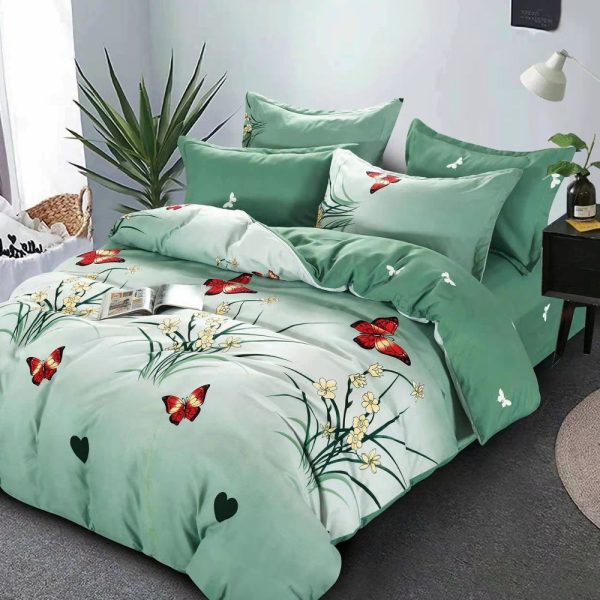 Lenjerie de Pat din Finet, 4 Piese, Pat 1 Persoana Vernil cu Fluturi – Super Elegant Pucioasa – PUF184822