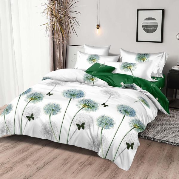 Lenjerie de Pat din Finet, 4 Piese, Pat 1 Persoana Alba cu Papadie – Super Elegant Pucioasa – PUF184827