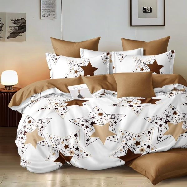 Lenjerie de Pat din Finet, 4 Piese, Pat 1 Persoana Alba cu Stelute Bej – Super Elegant Pucioasa – PUF184835