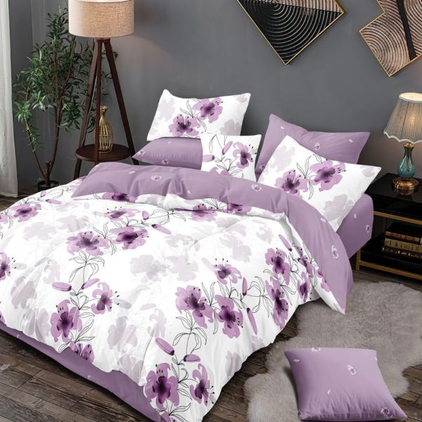 Set Lenjerie de pat din Finet Gros, Cearceaf cu elastic, 6 Piese, Pat 2 Persoane – Super Elegant Pucioasa – PUF10546