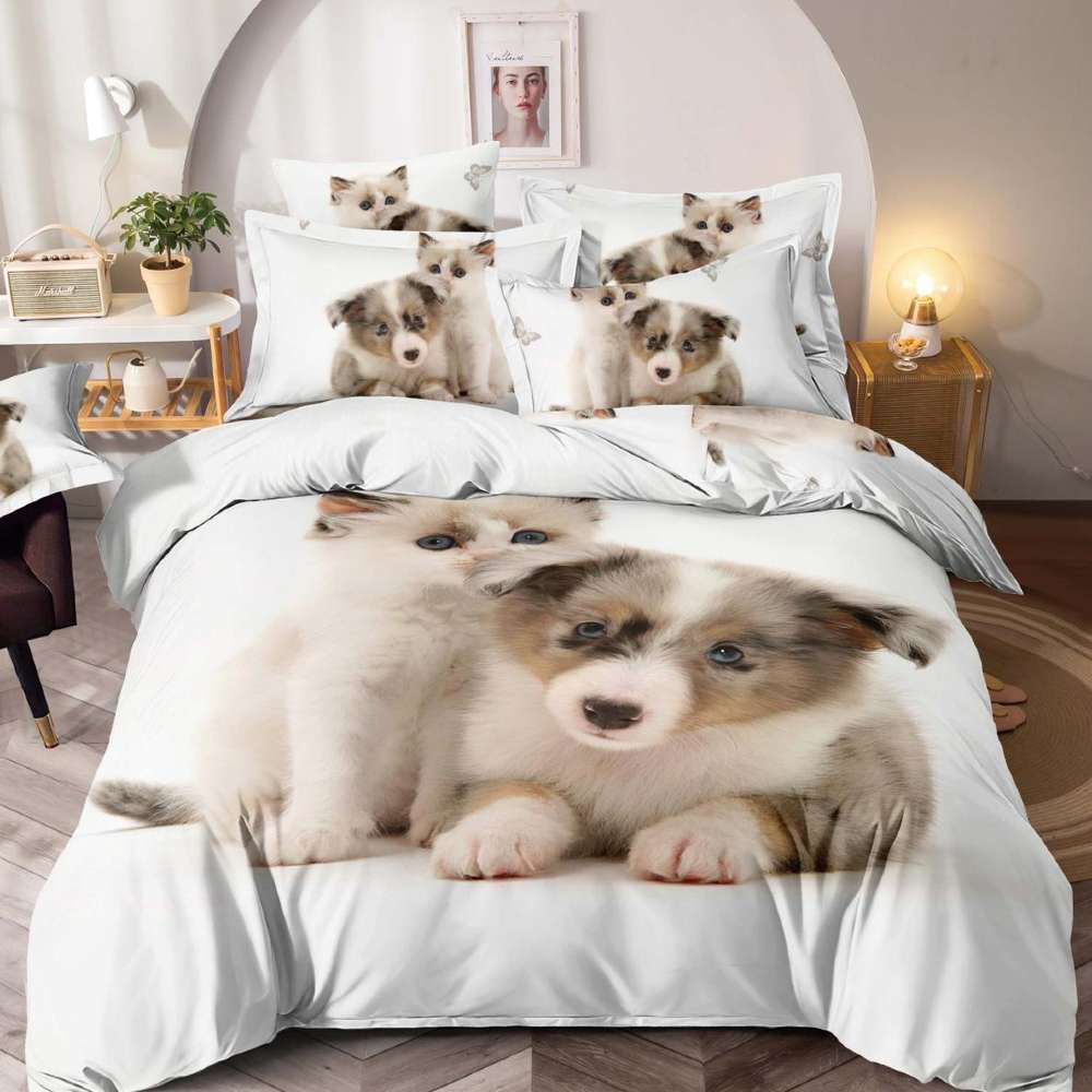 Set Lenjerie de Pat Dublu, Bumbac Finet Superior, 2 Fete, 6 Piese – Happy Puppies – PUF26844