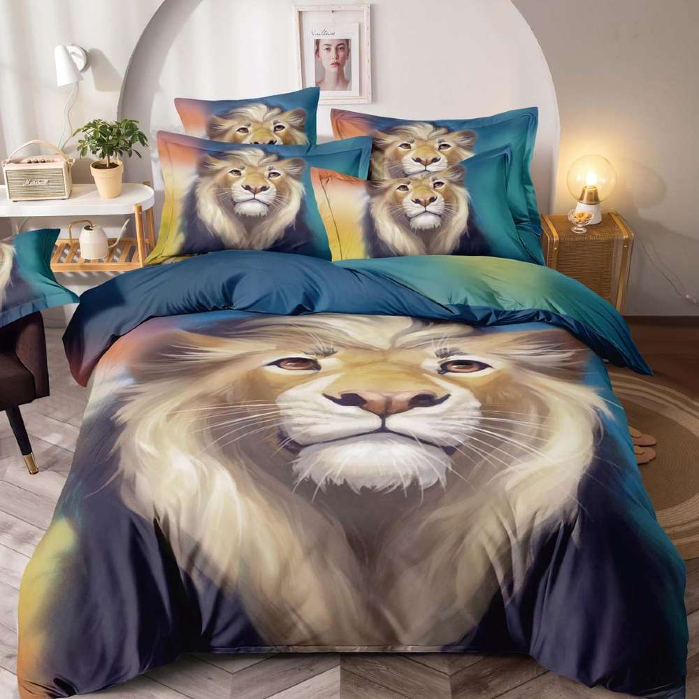 Set Lenjerie de Pat Dublu, Bumbac Finet Superior, 2 Fete, 6 Piese – Lion King – PUF26882