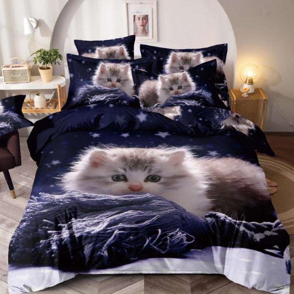Set Lenjerie de Pat Dublu, Bumbac Finet Superior, 2 Fete, 6 Piese – Puffy Cat – PUF26875
