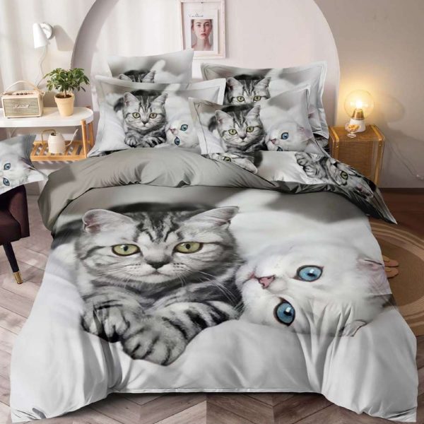 Set Lenjerie de Pat Dublu, Bumbac Finet Superior, 2 Fete, 6 Piese – Sweet Kitty – PUF26893