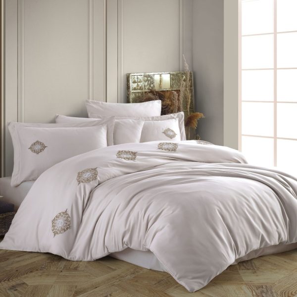 Lenjerie de Pat Hobby cu Broderie, Bumbac 100%, 4 Piese, Pat 2 Persoane – Azra Bej – PUF65151