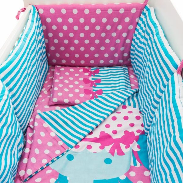 Lenjerie Patut Bebelusi + 2 Protectii de Pat, Imprimeu Elefanti, 5 Piese – Heinner – UBS5-ELP