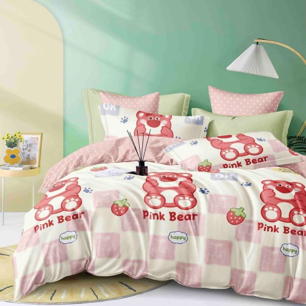 Set Lenjerie de Pat din Finet cu 2 Fete, 6 Piese, Pat 2 Persoane Pink Bear – JoJo Home – PUF9767