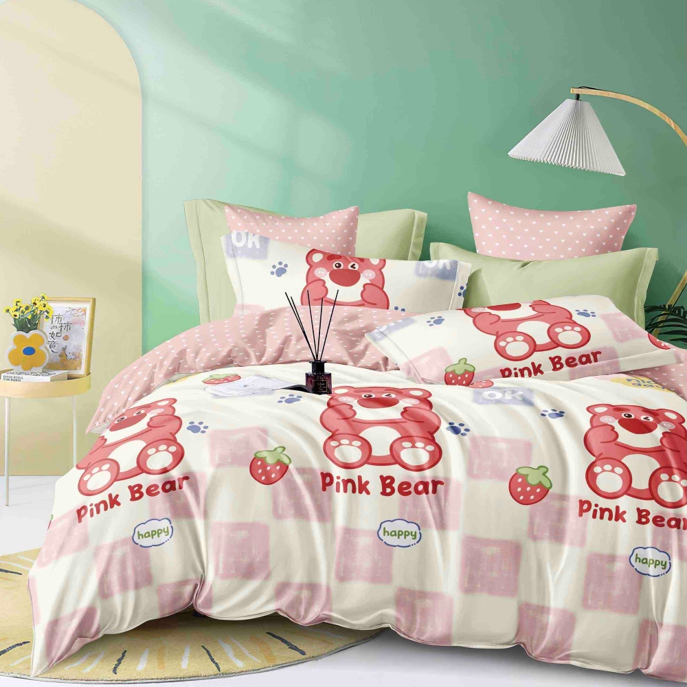 Set Lenjerie de Pat din Finet cu 2 Fete, 6 Piese, Pat 2 Persoane Pink Bear - JoJo Home - PUF9767