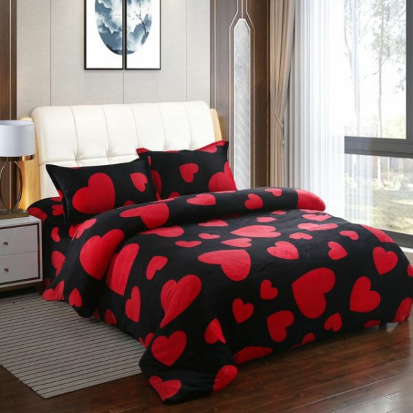 Set Lenjerie Pufoasa Cocolino, 4 Piese, Pat 2 persoane – Sky Home – Red Hearts – PUF8516