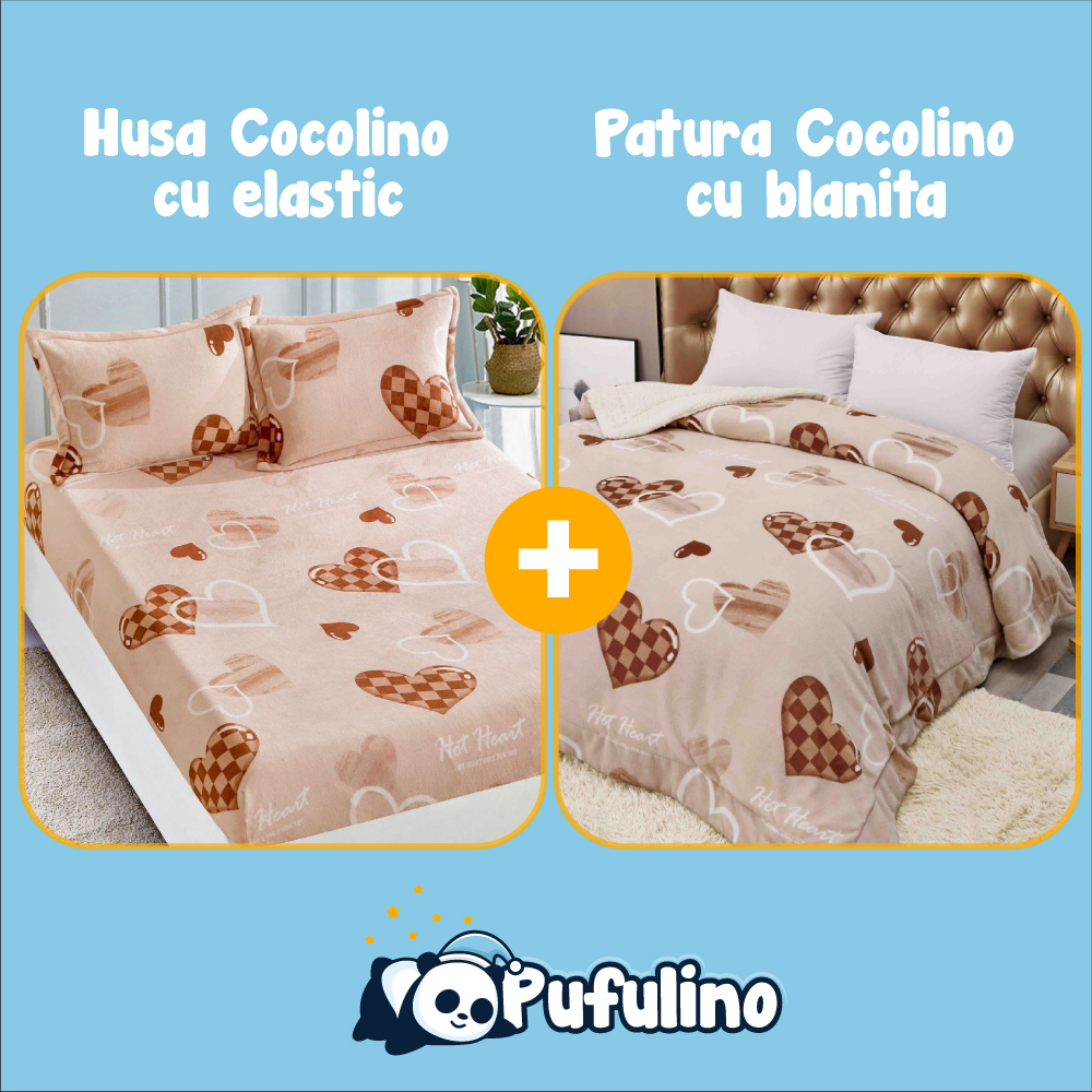 PACHET PROMO: Husa Cocolino cu Elastic si 2 Fete de Perna + Patura Cocolino cu Blanita - PUF175921
