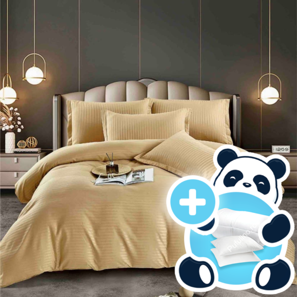 PACHET PROMOTIONAL: Lenjerie Model Damasc, Cearceaf cu Elastic, 6 Piese + Pilota toamna/iarna + 2 Perne – 166911