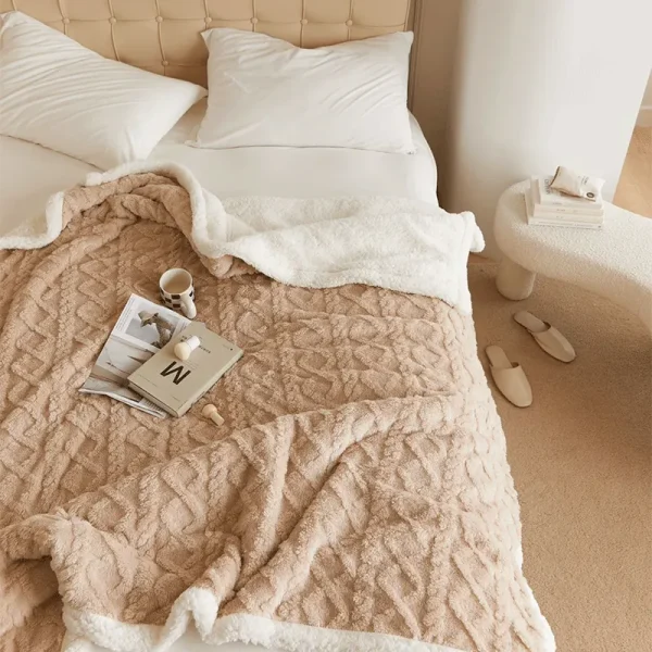 Patura Cocolino cu Blanita Uni, Model Tricotat, Pat 2 Persoane, Bej – JoJo Home – PUF73512