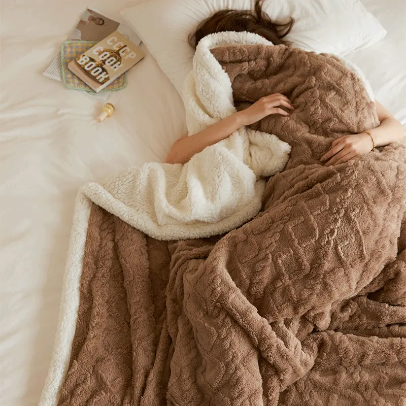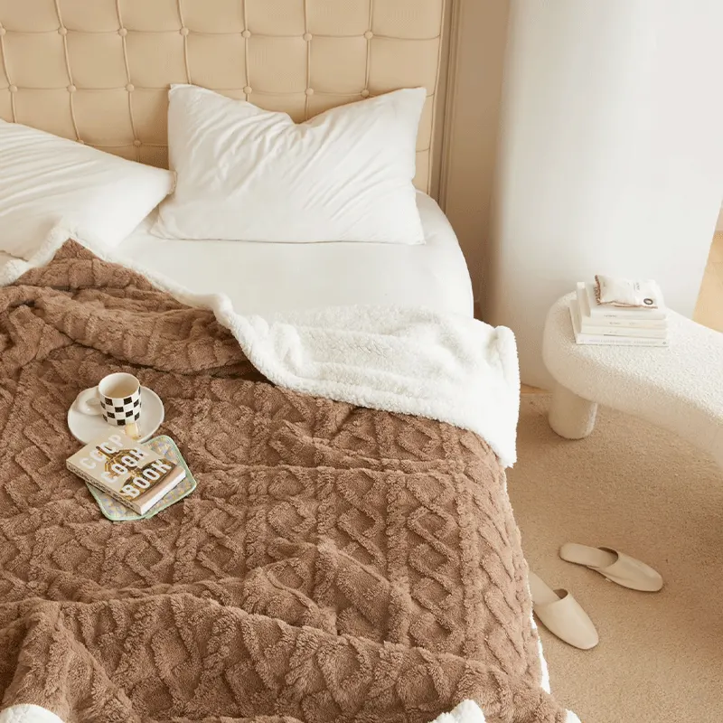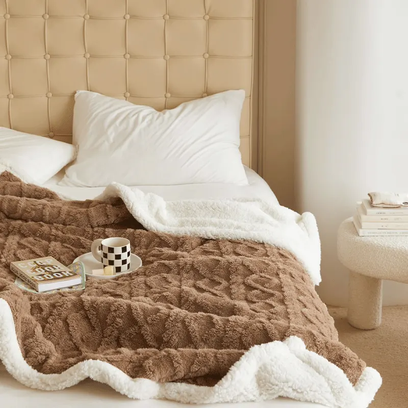 Patura Cocolino cu Blanita Uni, Model Tricotat, Pat 2 Persoane, Maro – JoJo Home – PUF73519