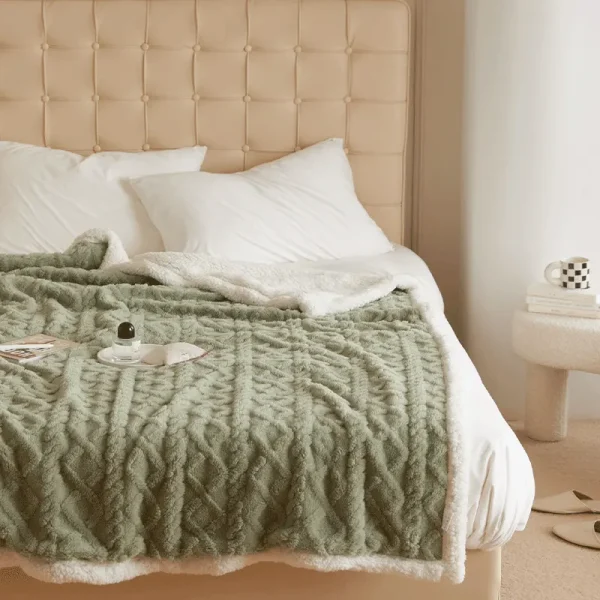 Patura Cocolino cu Blanita Uni, Model Tricotat, Pat 2 Persoane, Verde – JoJo Home – PUF73510