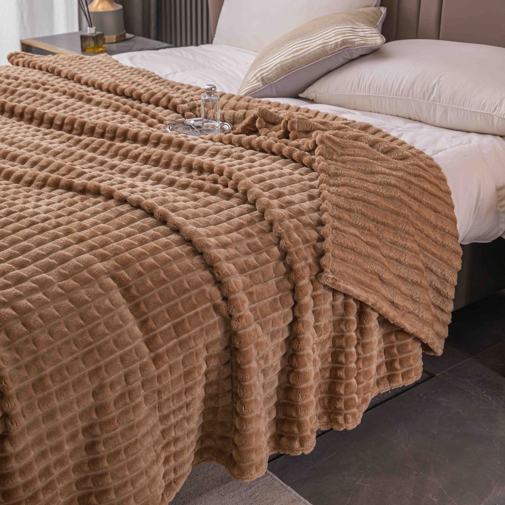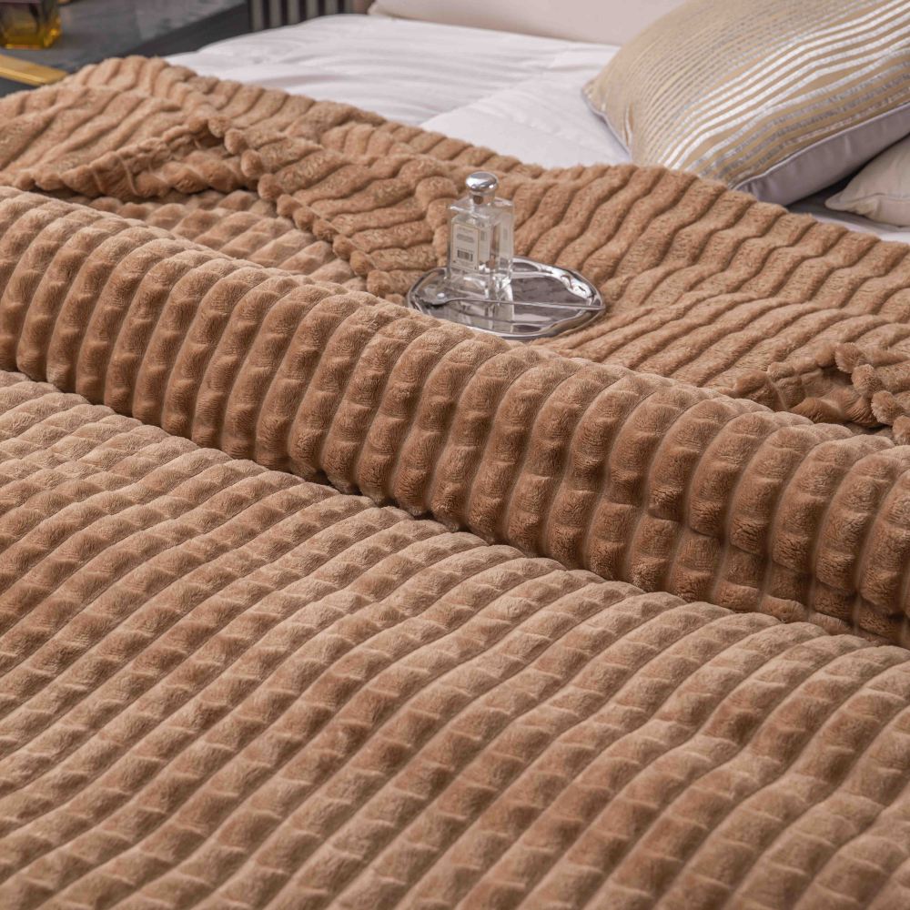 Patura Cocolino cu carouri, cu o textura foarte fina si catifelata. Patura este foarte practica, poate fi folosita atat pentru a amenaja patul, in dormitor, cat si pentru a acoperi canapeaua sau pentru a va incalzi in perioadele friguroase ale anului. Designul unic, cu dungi, si materialul in relief ii confera un aspect deosebit care cu siguranta va fi remarcat de oaspetii casei voastre.