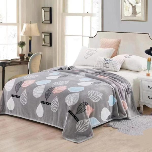 Patura Cocolino Super Soft, Pat 2 Persoane, 200 x 230cm, Grey Leafs – Super Elegant Pucioasa – PUF141170