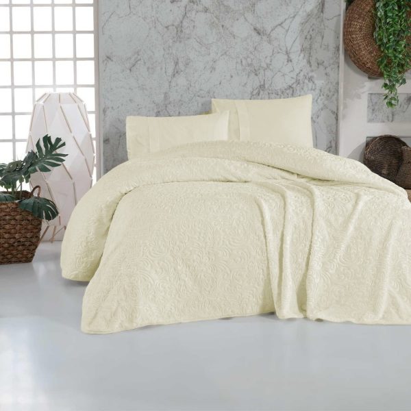 Patura de Lux Embosata tip Cuvertura, Pat 2 Persoane, 220 x 240cm – Crem – PUF57808