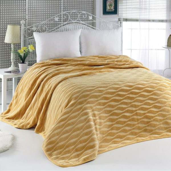 Patura de Lux Embosata tip Cuvertura, Pat 2 Persoane, 220 x 240cm – Galben – PUF95466