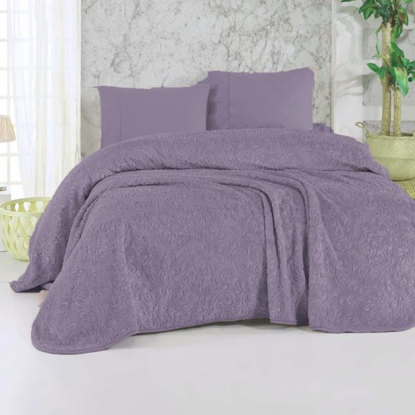 Patura de Lux Embosata tip Cuvertura, Pat 2 Persoane, 220 x 240cm – Mov – PUF57811
