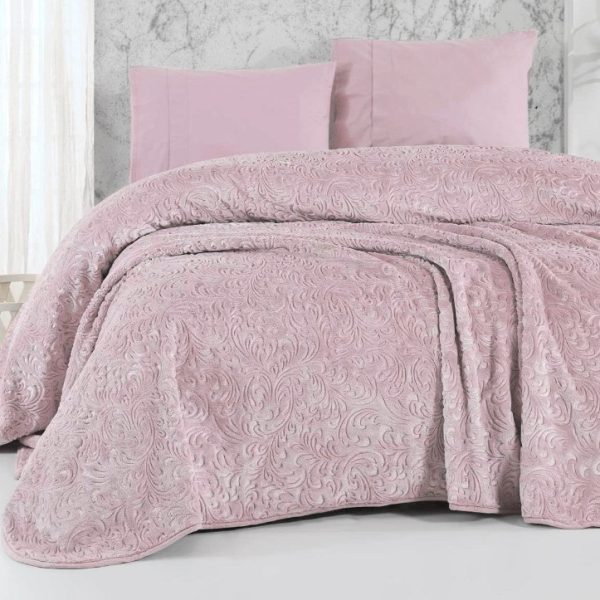 Patura de Lux Embosata tip Cuvertura, Pat 2 Persoane, 220 x 240cm – Roz Deschis – PUF93108