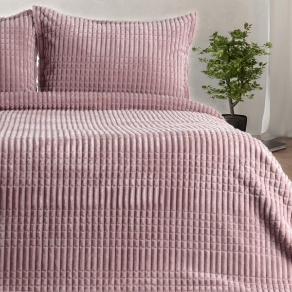 Patura de Lux Merinos tip Cuvertura + 2 Fete de Perna, Pat 2 Persoane, 220 x 240cm – Roz – PUF70363