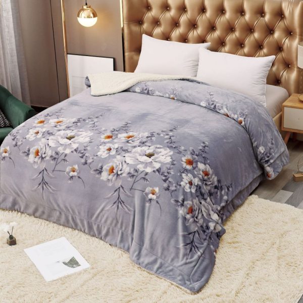 Patura Dubla Cocolino cu Blanita, Lilac Flowers, Pat 2 Persoane – JoJo Home – PUF137458