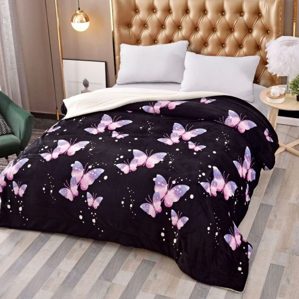 Patura Dubla Cocolino cu Blanita, Purple Butterflies, Pat 2 Persoane – JoJo Home – PUF137459